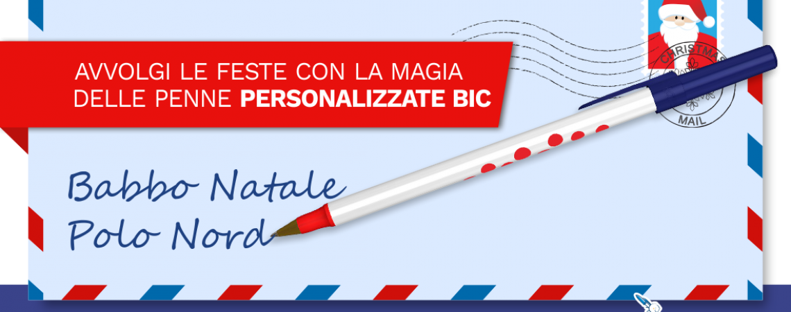 Questo Natale lascia il segno! Con Bi.Pen puoi fare un regalo di grande impatto, sfruttando la stampa di alta qualità Bic. Scegli tra le penne personalizzate Bic caratterizzate da colori brillanti in varie aree di stampa, una personalizzazione estrema, vivace e divertente che coinvolge, emoziona e sorprende. La brillantezza e la corposità dei colori risaltano all’occhio, la grafica personalizzata conferisce carattere e originalità alle penne Bic, le più riconosc...