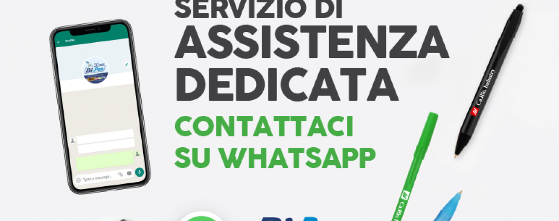 Comunicare direttamente con un assistente commerciale per avere un prodotto quanto più soddisfacente possibile aiuta! Per questo Bi.Pen utilizza un numero WhatsApp diretto, un filo diretto per facilitare il servizio e garantire in tempi rapidi la realizzazione di penne personalizzate. Il numero WhatsApp permette di chiedere maggiori informazioni e delucidazioni direttamente ai nostri assistenti commerciali, che sapranno rispondervi e fornirvi ogni dettaglio di un prodotto che è di...