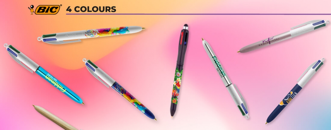 Iconica, senza tempo e famosa in tutto il mondo. È la nostra Bic 4 Colours: una penna, 4 colori di inchiostro. La puoi personalizzare in varie versioni: Stylus, Fashion (turchese, viola, verde acido e rosa), Fluo (inchiostro a sfera giallo fluorescente con blu, nero e rosso) e persino 3+1 (con portamina). Puoi decidere di essere tradizionale, appariscente, trendy e funzionale. Adesso c’è anche Wood Style per chi vuole impressionare con una spettacolare finitura effetto legno...