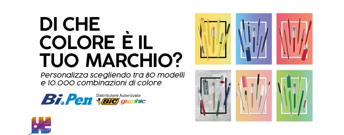 Sai che si possono ottenere fino a 10.000 combinazioni di colore gratuite per i componenti standard sulle penne Bic personalizzate? Si chiama Mix &Match e ti permette di combinare al meglio i colori delle tue penne! Bic è il brand specializzato nella personalizzazione e nella promozione pubblicitaria del tuo marchio. Inviaci il tuo logo, noi ti inviamo la bozza della penna e scoprirai le migliaia di combinazioni di colore con cui possono essere personalizzate le parti della penna in a...