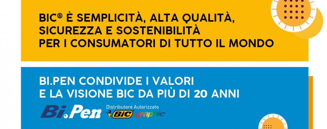 Le penne Bic sono fatte per durare nel tempo. Bic ha una storia di successo, innovazione e impegno che affonda le sue radici lontano nel tempo. Dal 1944 ad oggi il brand Bic si è affermato nell’immaginario collettivo come brand affidabile e riconoscibile. La funzionalità ha reso i prodotti Bic delle vere e proprie icone, grazie al valore che acquisiscono agli occhi di chi li sceglie o li riceve. La stampa del marchio e la lavorazione in edizione limitata rendono il prodotto u...