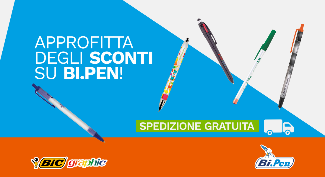 Inserisci il codice coupon PROMO10 al momento dell’acquisto e potrai usufruire della promozione sull’articolo selezionato. Includendo la spedizione gratuita il risultato è un prezzo molto conveniente su ogni prodotto personalizzato che quindi risulta estremamente originale. Personalizzare solo su Bi.Pen conviene! Approfittane subito. L’offerta non è cumulabile con altre iniziative in corso.