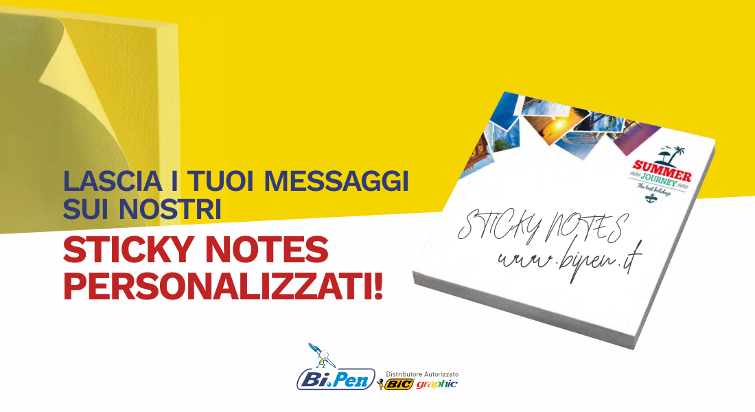 Idee per un progetto, cose da fare, messaggi da lasciare: gli sticky notes sono indispensabili per non dimenticare le cose più importanti. E se sono personalizzati con BiPen, allora gli appunti sono davvero al sicuro!
