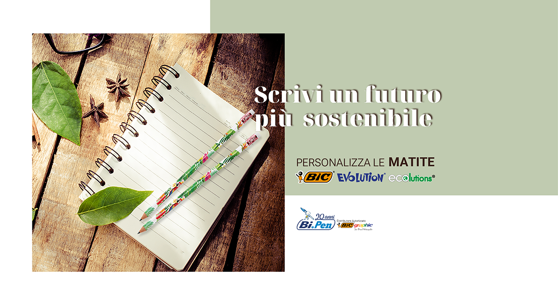 Scrivere un futuro sostenibile è possibile con Bipen. Fai una scelta importante per il Pianeta: scegli le matite personalizzate Evolution Ecolutions. Si tratta di matite senza legno realizzate in resina sintetica riciclata che non produce schegge in caso di rottura. La mina HB in grafite è ultraresistente e dall’eccellente cancellabilità.