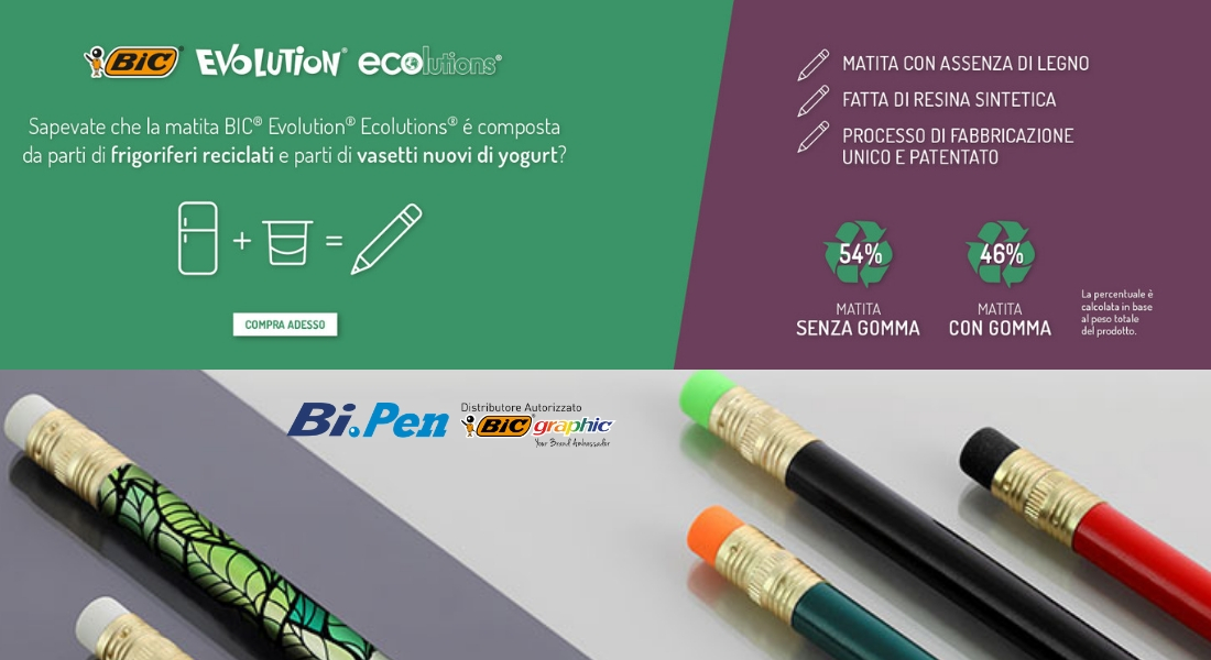 Sapevate che la matita Bic Evolution Ecolutions è composta da parti di frigoriferi riciclati e materiale di scarto della produzione di vasetti di yogurt?