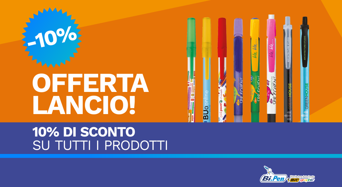 Approfitta dell’offerta lancio sul nuovo sito Bi.Pen. Per tutti i prodotti abbiamo pensato ad un’incredibile promozione del 10% di sconto. Ogni nuovo inizio va festeggiato e per questo tutti i prodotti sono scontati!
