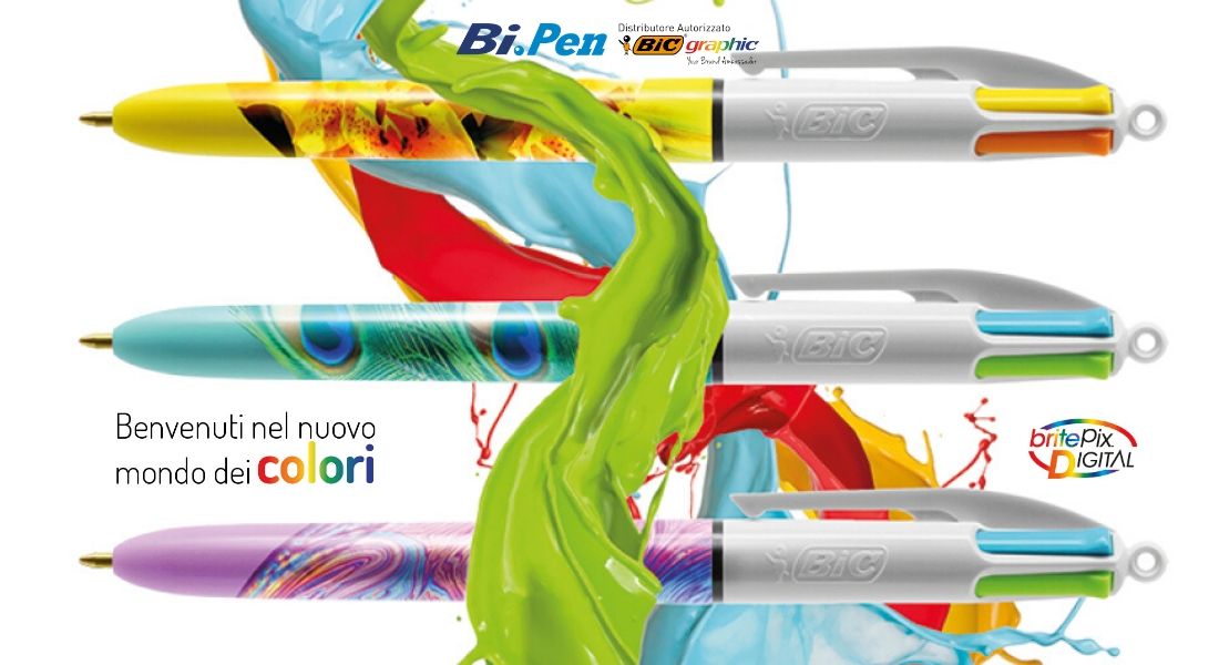 Per una comunicazione a tutto colore scegli BritePix Digital, la nuova soluzione ideata da Bic Graphic per creare delle penne personalizzate di grande impatto promozionale. Definizione HD, effetto rilievo, colori illimitati e vibranti: la penna Bic 4 Colours stampata con l’effetto BritePix Digital, oltre ad avere una stampa Digital ad alta definizione in quadricromia a 360° su tutta la lunghezza del corpo, viene personalizzata con un logo o una scritta in BritePix con eccellente risoluzione fotografica, che dura nel tempo. Andate su Bi.Pen e scegliete le 4 Colours BritePix Digital per un regalo di Natale coi fiocchi, avete ancora tempo per stupire tutti e comunicare il vostro messaggio in maniera originale!