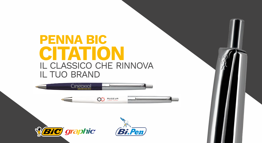 La penna Bic Citation è il classico che non passa mai di moda! L’intramontabile penna, leggera e dal profilo sottile, rappresenta lo strumento di scrittura ideale per professionisti che tengono particolarmente a trasmettere un’immagine elegante del proprio brand e a rilanciarla con il giusto stile.