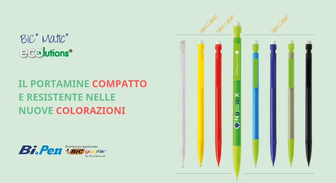 La primavera continua a stupire anche su Bi.Pen. Sono disponibili, infatti, nuovi colori di Bic Matic Ecolutions, il portamine di prima categoria compatto e resistente che non si tempera e scrive più scuro e fluido che mai!