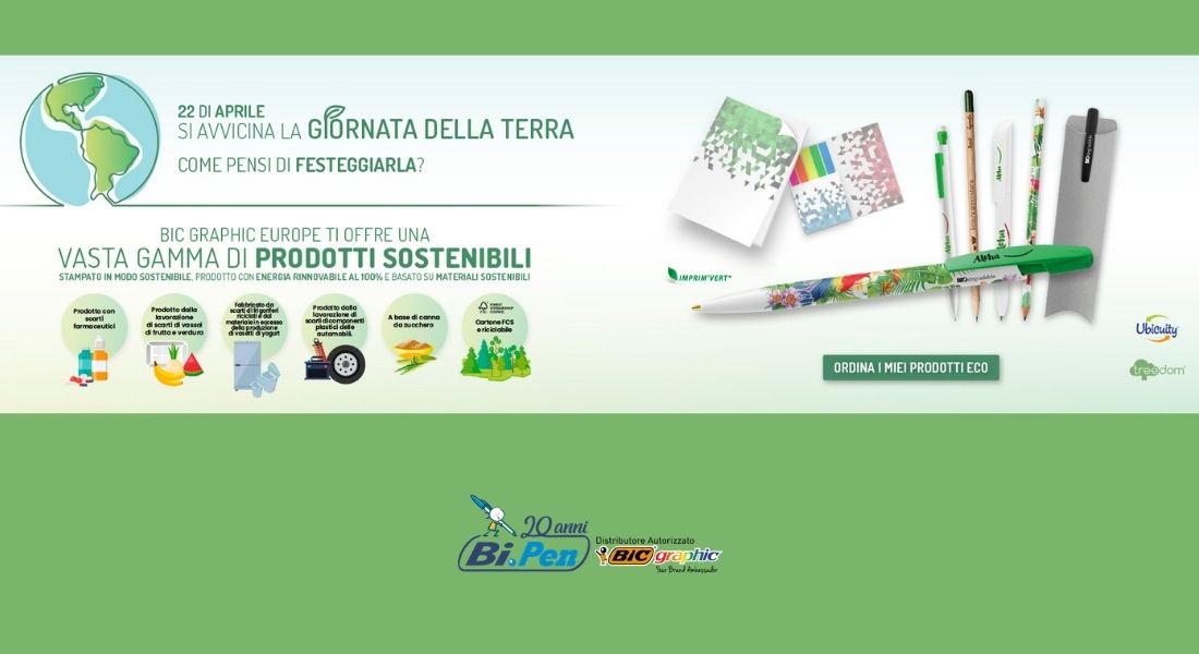 Si avvicina la Giornata della Terra che cade il 22 aprile e Bic propone una vasta gamma di prodotti sostenibili personalizzabili che potrebbero dare una svolta all’immagine coordinata della tua azienda. Si tratta di penne, matite e sticky notes stampati in modo sostenibile, prodotti con energia rinnovabile al 100% e basati su 4 materiali sostenibili: materiali biologici e a base bio, materiali riciclabili, carta proveniente da foreste sostenibili, carta riciclata. I materiali che vengono utilizzati derivano da scarti farmaceutici, dalla lavorazione di scarti di vassoi di frutta e verdura, da frigoriferi riciclati e dal materiale in eccesso della produzione di vasetti di yogurt, dalla lavorazione di scarti di componenti plastici delle automobili, altri sono a base di canna da zucchero o di cartone riciclabile. Tutti questi prodotti sono personalizzabili da Bi.Pen con il tuo logo aziendale. Che aspetti? Approfitta pure tu per scrivere un futuro più sostenibile.
