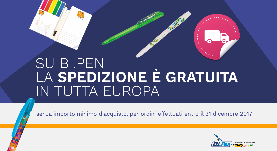Spedizione inclusa nel prezzo? Solo su Bi.Pen! Se acquistate penne personalizzate e altri strumenti di scrittura sul nostro sito la spedizione sarà gratuita su tutto il territorio europeo.