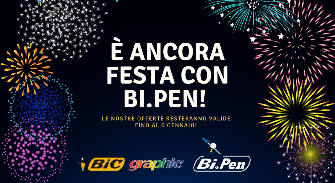 Il Natale è ormai passato e non sei riuscito ad usufruire delle speciali promozioni Bi.Pen? Nessun problema, le nostre offerte resteranno valide fino al 6 gennaio! Visita la sezione dedicata sul sito https://www.bipen.it/category/offerte per scoprire tutte le promozioni disponibili, gioca a personalizzare i tuoi strumenti di scrittura Bic preferiti e inviaci subito il tuo ordine per riceverlo comodamente e gratuitamente a casa.